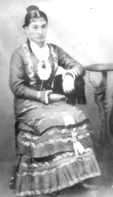 Drucilla Barber, first wife of John Harrison Hill. Married November 11, 1880. Original of this photo was a tintype.