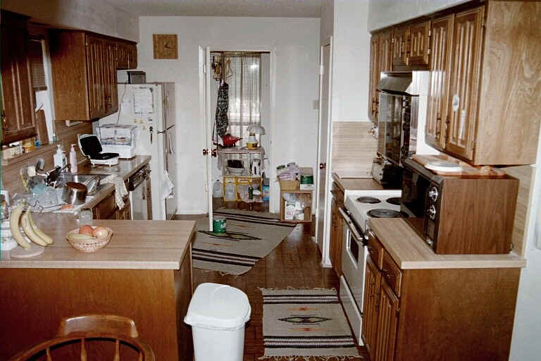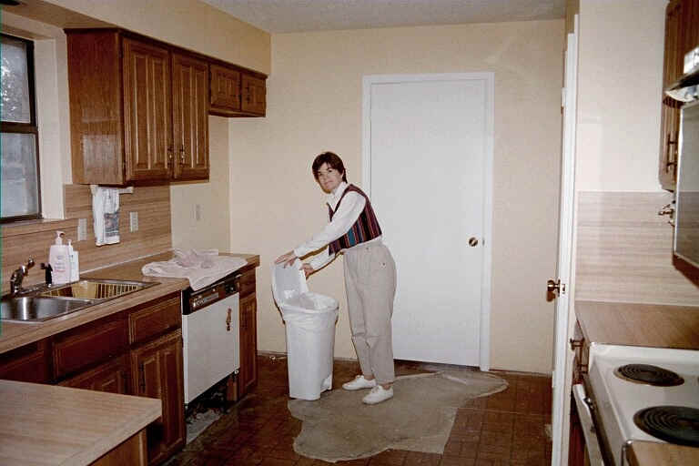 | October 2000 | Move out of kitchen and master suite; contractors finish building new pantry, mount new bath cabinets, sheetrock where needed, paint & trim east end of house. Flooring contractors install Pergo throughout east end. |