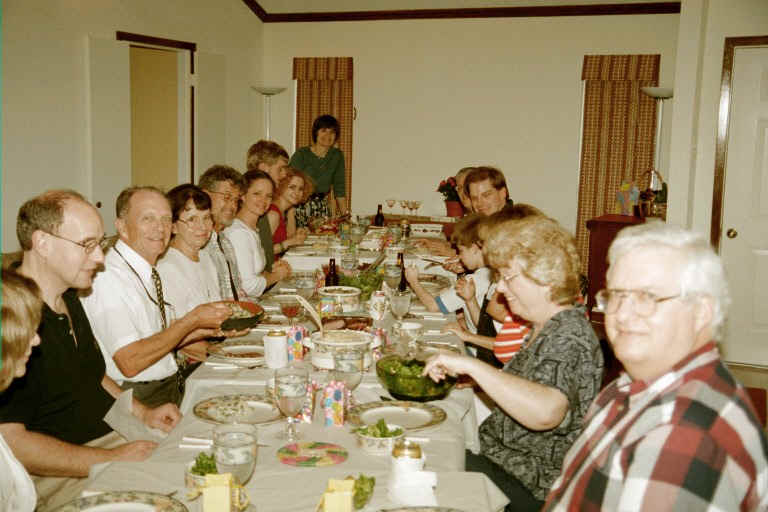 | April 15, 2001 | Easter Dinner for 17 in the new room! Praise the Lord for family, friends, our new space -- and for His promise: "I am the resurrection and the life. He who believes in Me will live, even though he dies." (John 11:25) |